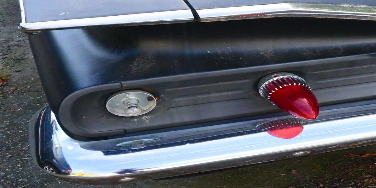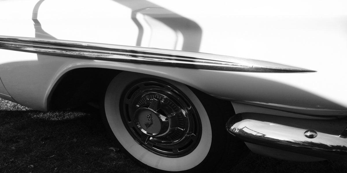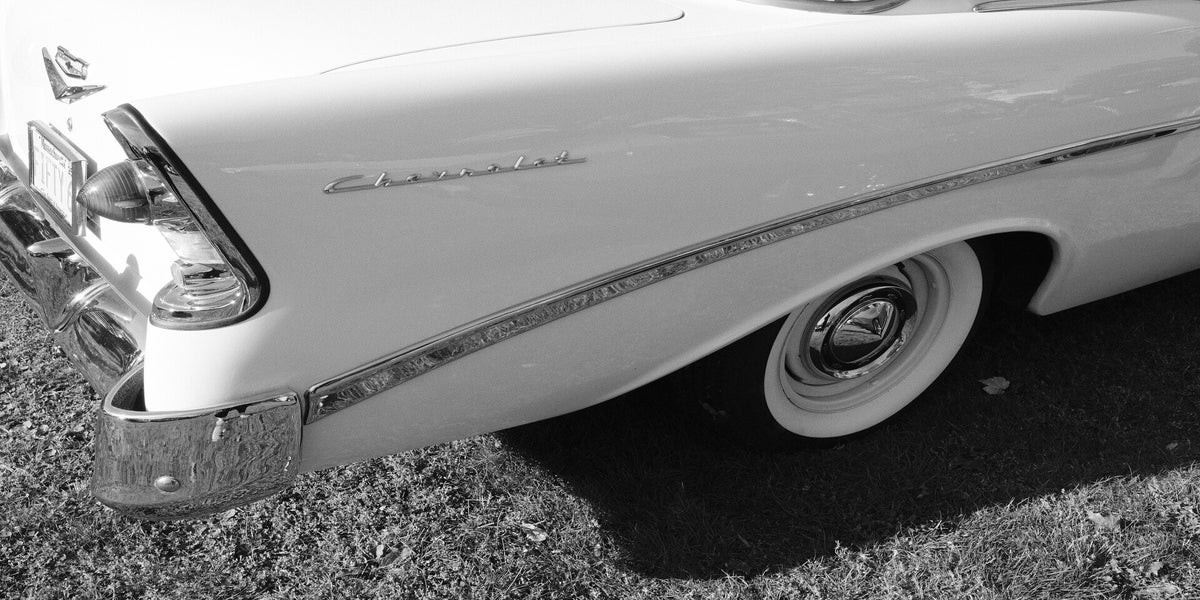 I saw this old, broken down, grimy 1960? Chevy Bel Air at a gas station. I just had to get a shot of the one remaining taillight that we'll never see the likes of again! The second car is a Dodge Dart with an Aerochrome filter effect (Reddish). The Dart had been painted bright green. I color shifted the RGB channels to get the shift effect. Gotta love the chrome on both.